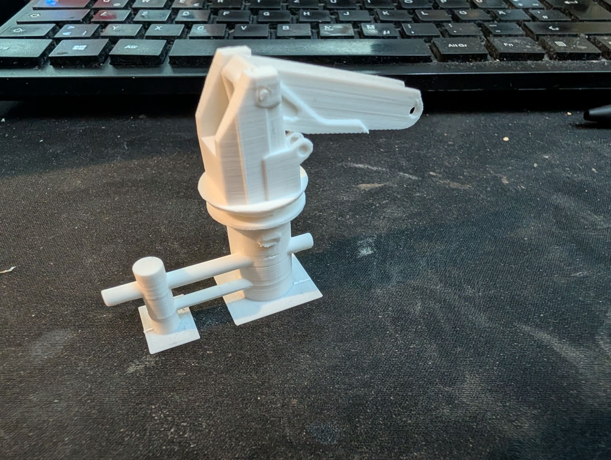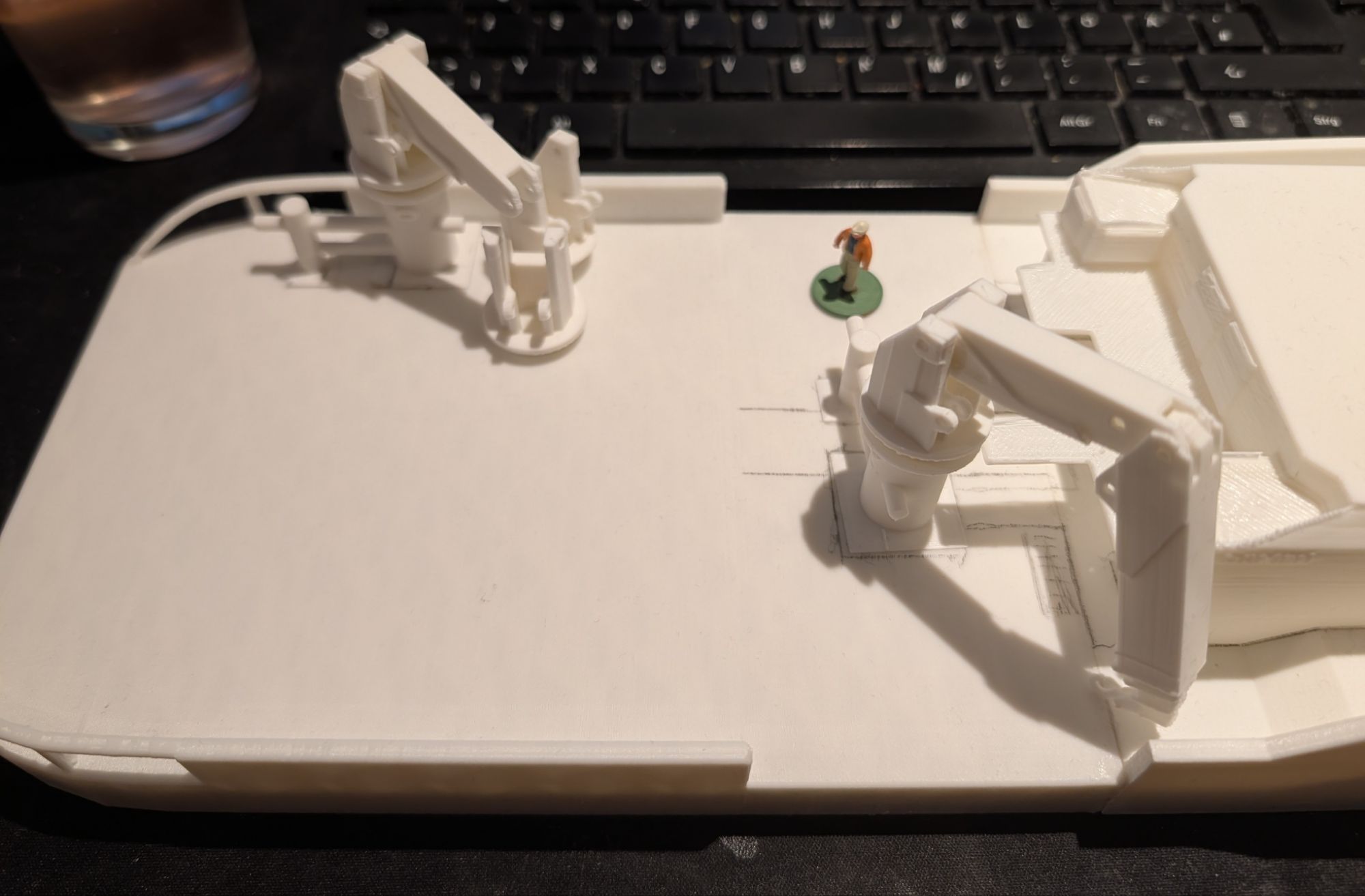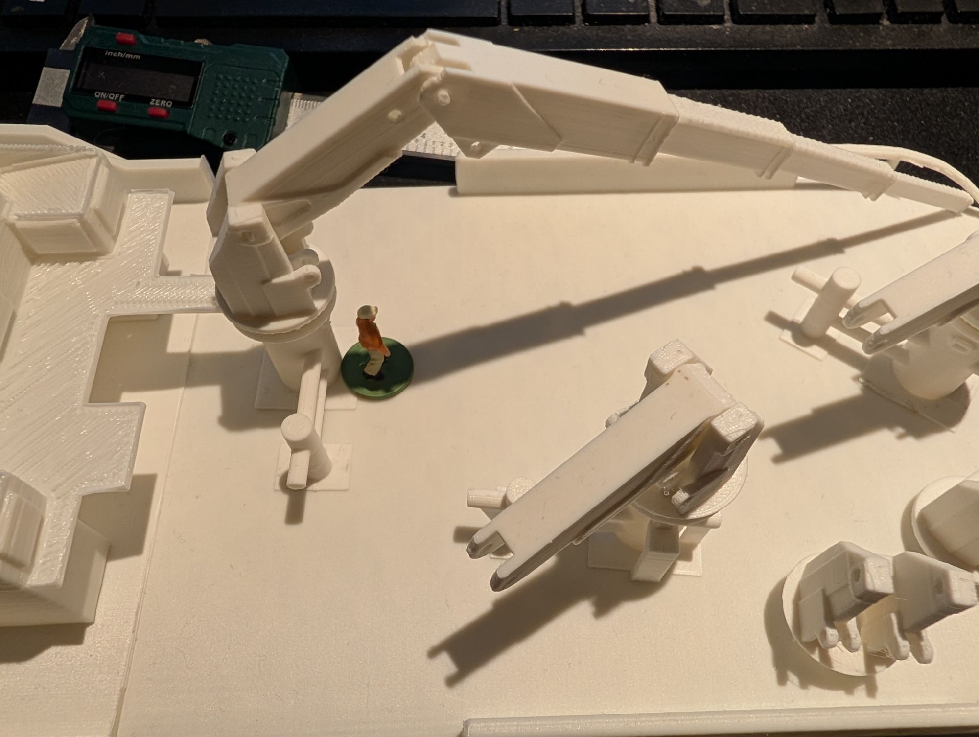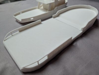 The changes to my model primarily relate to the superstructure which is now more visually appealing, but also more challenging to model. THe following gallery shows the 3D printed parts of the model as it currently sits on my workbench.