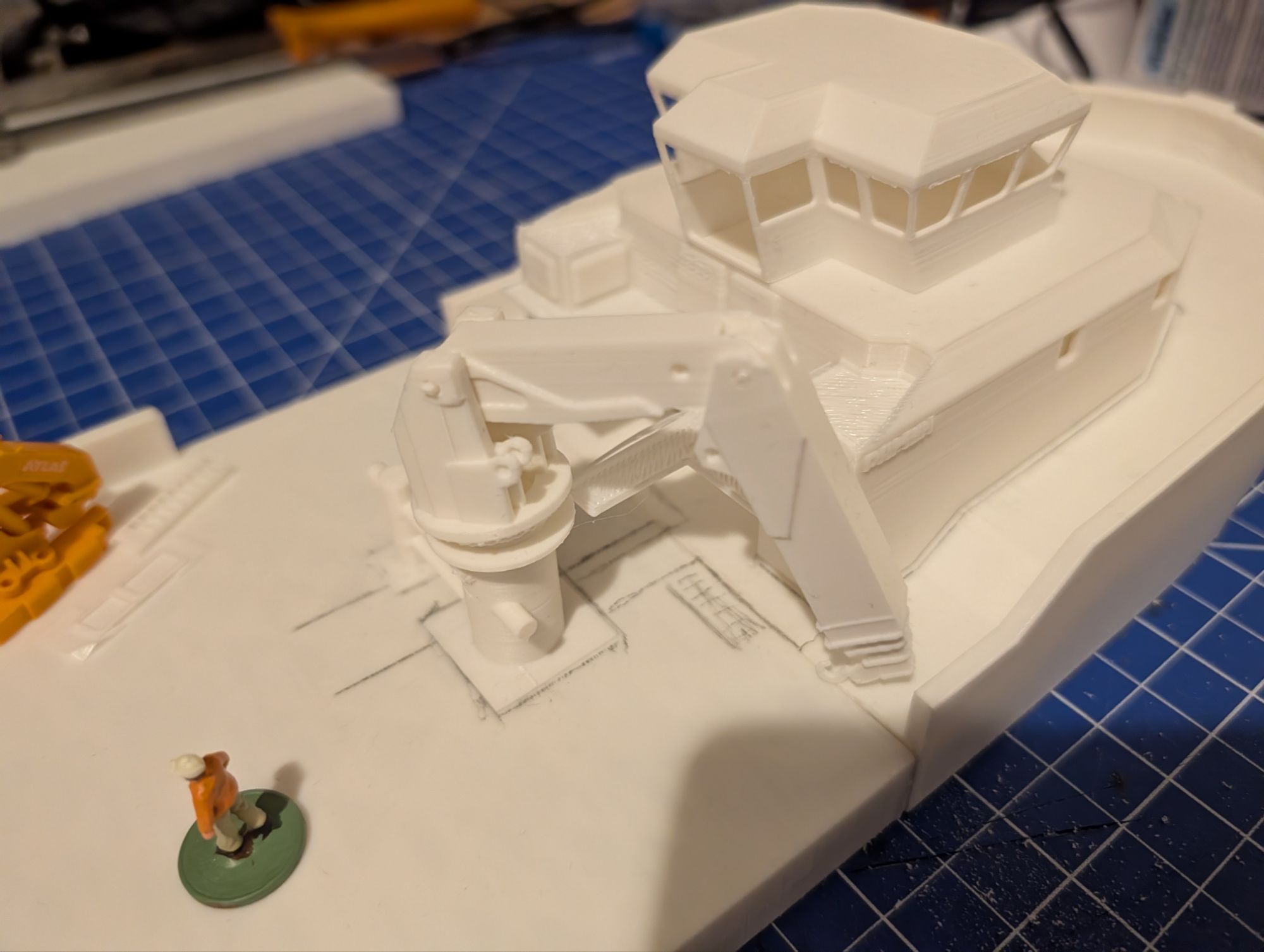 The crane is quite a challenge. Especially since I decided to make it operational. Installing a geared motor to turn the boom shouldn’t be much of a problem, but simulating the hydraulics is a real feat.